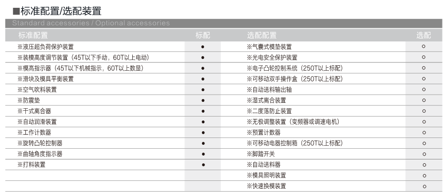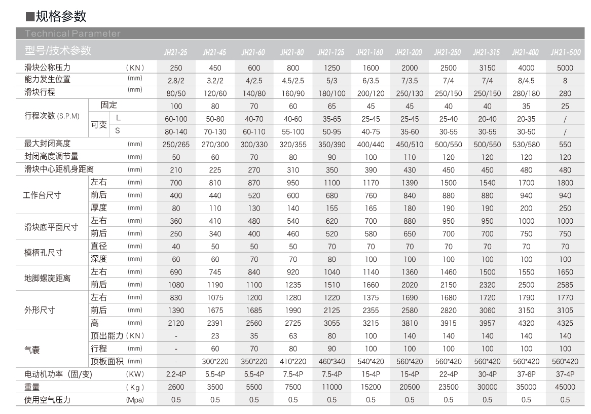 • 产品特点  •钢板焊接机身刚性好,精度稳定。  •采用干式或湿式气动摩擦离合制动器,动作灵敏可靠。  •大齿轮、齿轮轴精密研磨,机床运行噪音低,运行平稳。  •滑块六面导轨,附气压式平衡装置,运行平稳,精度准确。  •采用液压超负荷保护装置,有效保护压力机和模具。  •采用PLC控制配自动送料装置后能形成单机自动化或多机自动化冲压生产线。  •本机型除定速外,有二种无极变速行程选择,更适合冲压件工艺要求和提高生产效率。