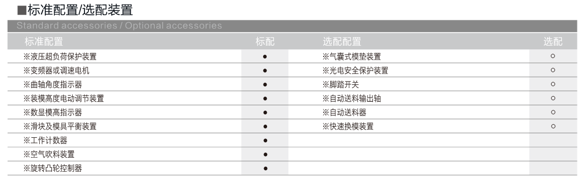 • 产品特点  •优质钢板焊接机身刚性好,提高了机身的强度和刚度。  •超大工作台面,适合大面积薄板 冲压及自动化级进模生产,工作效率高。  •大齿轮、齿轮轴精密研磨,机床运行噪音低,运行平稳。  •滑块六面导轨,导向好,精度准确。  •采用干式或湿式气动摩擦离合制动器,动作灵敏可靠。。  •采用双曲轴逆向传,同步性好,抗偏载能力强。  •无级调整电机装置,适应不同的冲压工艺要求。