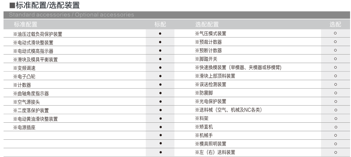 • 产品特点  •钢板焊接机身刚性好,按高精密,高强力设计,去应力退火,精度稳定性可靠。  •为保证机器连杆的相对平稳性,采用气动平衡器装置设计方式。  •调模精度达到0.1mm,安全,便捷,可靠。  •曲轴、齿轮、螺杆等部件,经硬氧化和研磨处理,具有极高的机械性能和使用寿命。  •机器结构设计合理,配置齐全,便于实现自动化生产和流水作业。 •采用高性能离合器和制动器,结构平稳安全可靠。 •本机采用双曲轴,双工位设计,适用于大工件精密冲压。